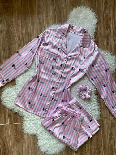 لباس خواب زنانه بلوز استین بلند و شلوار ساتن درجه ۱