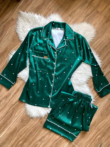 ست بلوز شلوار زنانه ساتن سبز درجه ۱