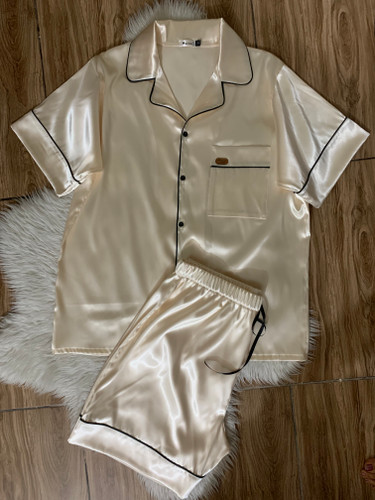 پیراهن شلوارک مردانه ساتن رنگ کرم