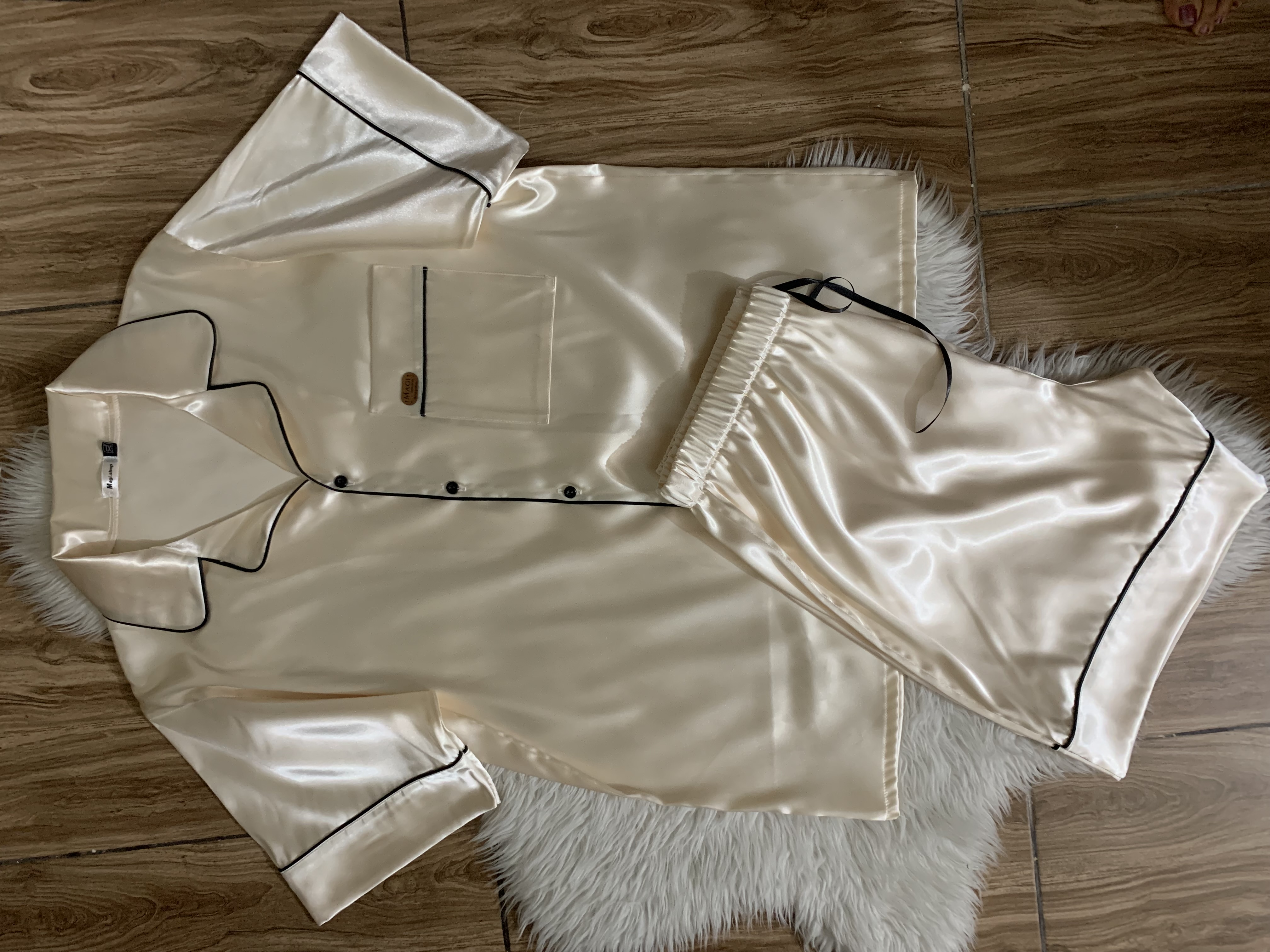 پیراهن شلوارک مردانه ساتن رنگ کرم