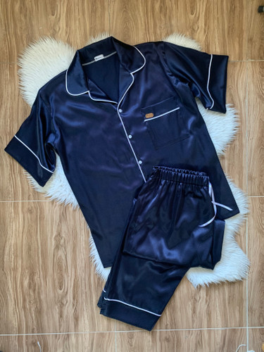 ست بلوز شلوار مردانه ساتن سورمه ای