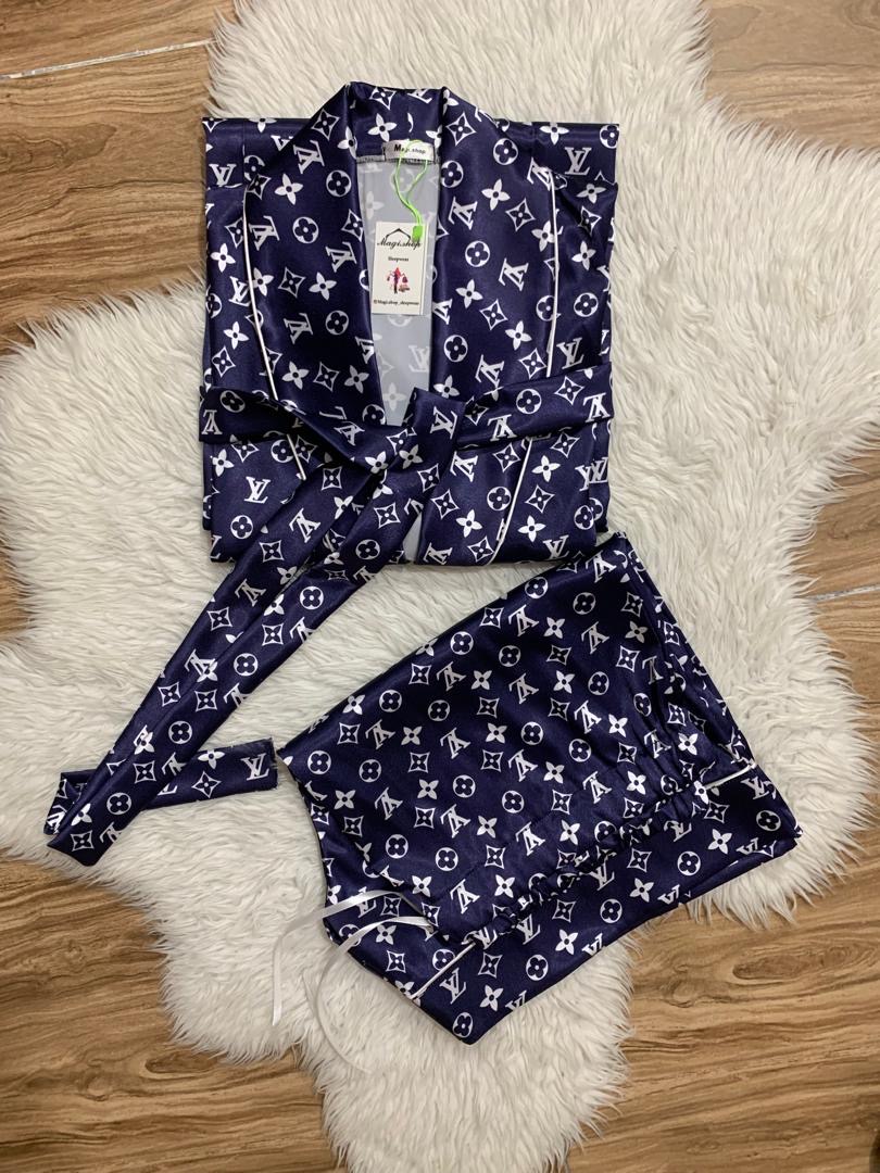 روبدوشامبر مردانه سورمه ای ساتن طرح LV