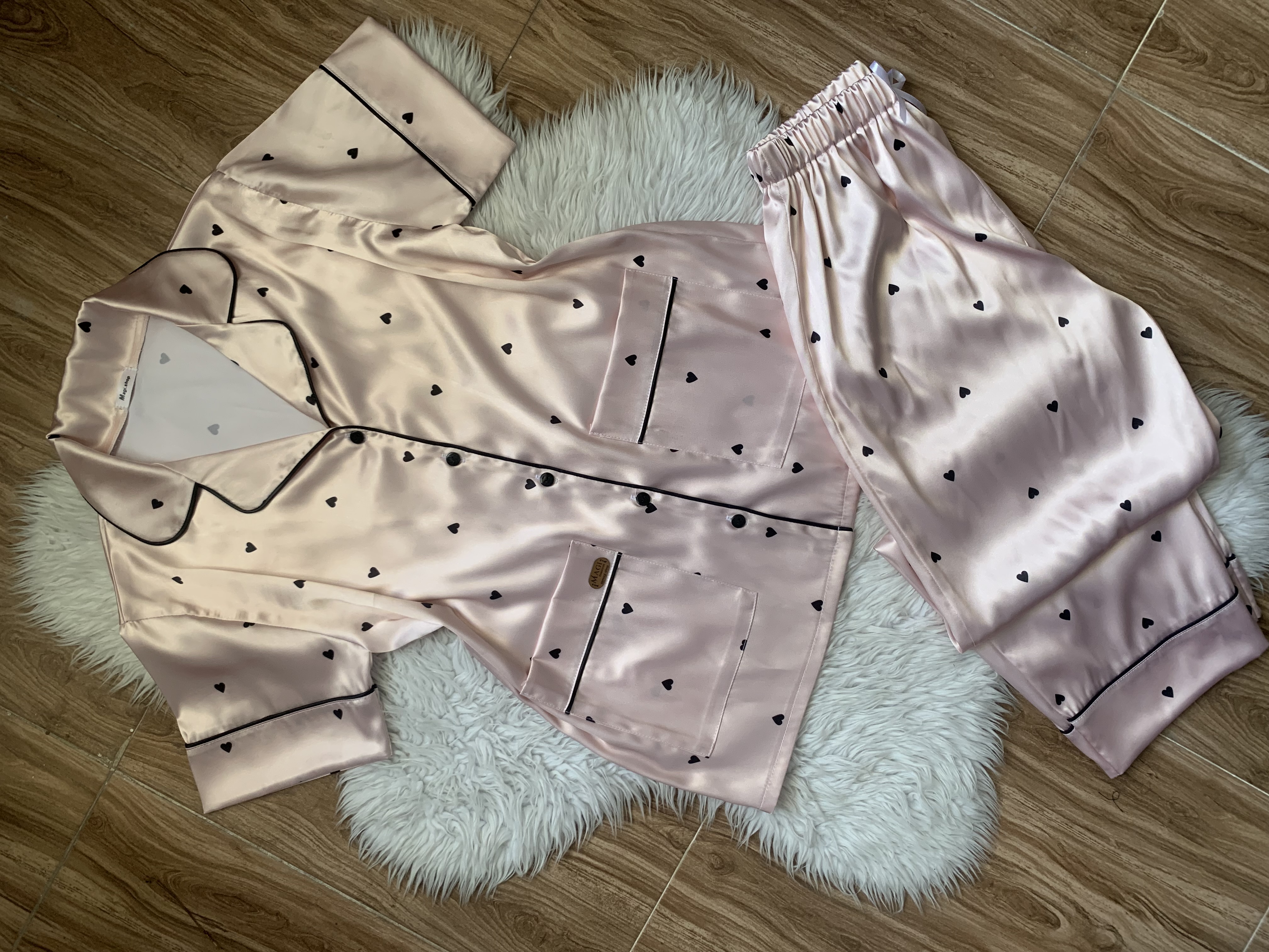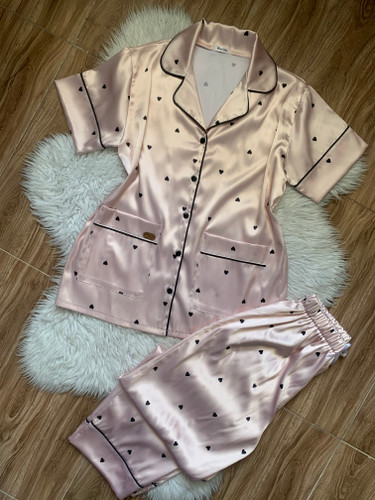 ست بلوز شلوار زنانه ساتن طرح ویکتوریا صورتی