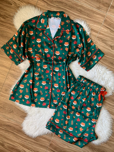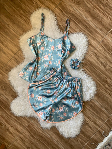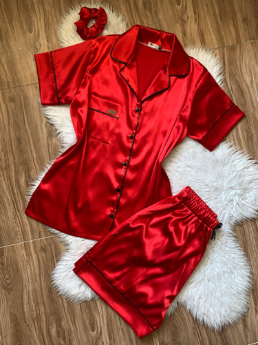 ست راحتی پیراهن استین کوتاه و شلوارک زنانه ساتن